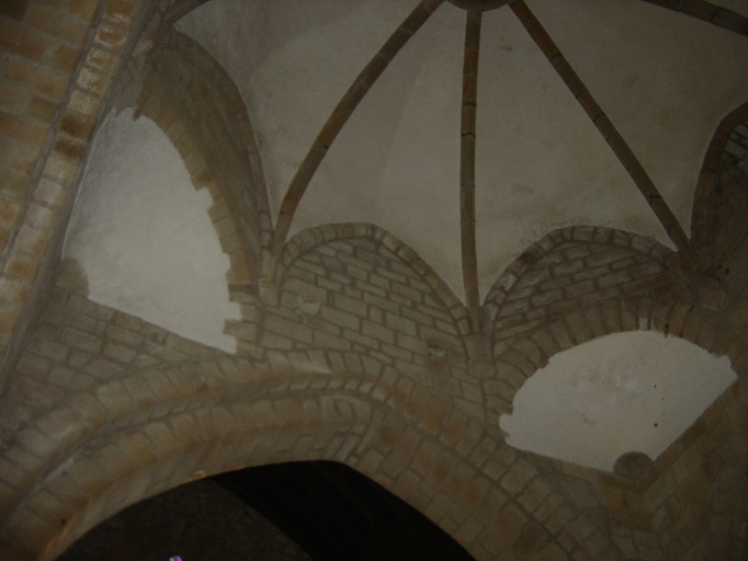 A chaque support cruciforme correspond, au niveau des murs gouttereaux, une colonnette en moyen appareil, tronquée, couronnée d´un chapiteau sculpté de motifs végétaux et reposant sur un cul-de-lampe sculpté de grotesques. Ces colonnettes sont placées dans la partie supérieure du mur et prennent appui sur celui-ci, à mi-hauteur à peu près, au-dessus d´une corniche moulurée horizontale.
