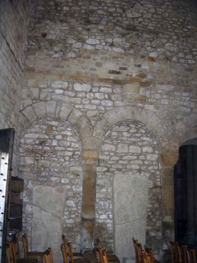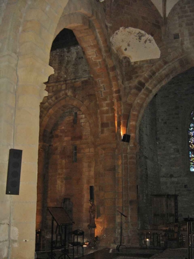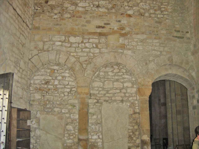 Dans le mur occidental du croisillon Sud du transept ont été construites, dans un massif en légère saillie sur le mur, trois arcades en plein-cintre reposant sur des colonnes massives.