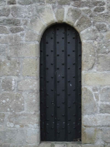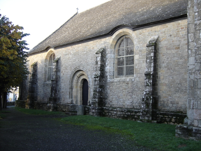 Le mur pignon du bras Nord de transept est percé d´une porte en arc plein-cintre haute et étroite. Les chaînages d´angle sont en grand appareil de granit. L´absidiole Nord est éclairée à l´Est par une baie de type meurtrière, tout comme le mur Est du bras de transept.