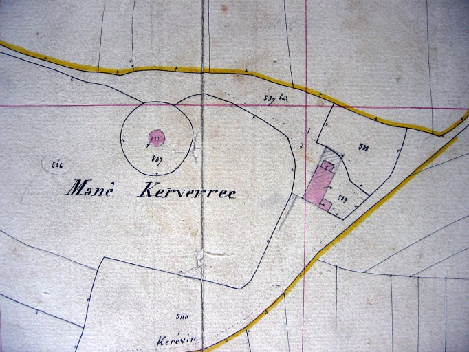 Des trois tumuli fouillés en 1871 par l´abbé Collet, celui de Mane Bogat près de Kermarquer a révélé un dolmen à galerie aujourd´hui mis en valeur (fig. 9 et 10). A Saint-Laurent, il reste deux supports et une table du dolmen ruiné de Mane er Varquez, dans un chemin creux au sud du village. Quant aux dolmens de Mane Braz, près de Kergonvo, et de Kercret Ihuel, leurs ruines fouillées en 1871 par l´abbé Collet ont encore été vues en 1973 par l´abbé Le Tallec.