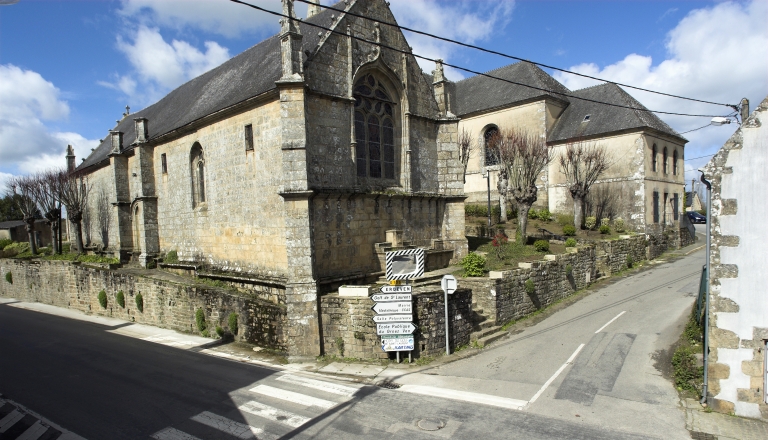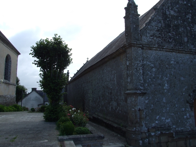 La sablière nord près du choeur donne la date de construction de la chapelle par une inscription en lettres gothiques : 'LAN MIL CINQ CENS SOIXANTE FUST ASISE CESTE CHARPENTERIE PAR DON JHA (Jean) LODREC MISZEUR FRACOIS LODREC MISZEUR 1560 ET ESTOY POR LORS CURE DO (m) CH. LE GARTZ 1560'. Une seconde inscription sur la même sablière nord, plus à l'ouest précise en capitales romaines : 'I LE LOZDREC PRE (tre) FICT FAIRE CE CLOCHER AU MOYS DE JUILLET 1563'. Un certain nombre d'indices : forme des contreforts différents, trace de reprise dans les murs sud et nord, différence de mouluration du jour ouest, font penser que l'édifice a été rallongé peu après sa construction. La tourelle carrée avec clocher couvert d'ardoise vue par Rosenzweig en 1861 a disparu dans la première moitié du 20e siècle. La porte sud n'est plus en usage peut-être depuis l'élargissement de la route ; une des deux portes nord, la plus proche du choeur a été bouchée. Sur le plan cadastral de 1811, la chapelle est située à cheval sur l'enclos paroissial, tandis que sur celui de 1845, le mur d'enclos encadre à peu de distance la chapelle : dans le contrefort nord-ouest, une entaille dans laquelle est fixée un gond semble la trace d'une ancienne fermeture. Aujourd'hui, cimetière et enclos ont disparu au profit d'un espace piétonnier commun incluant le presbytère (qui conserve cependant encore son enclos).