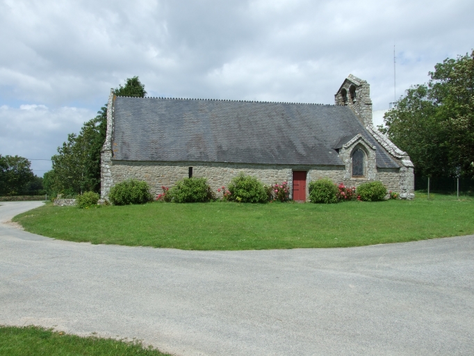 Aujourd'hui privée de son choeur dont la crypte est encore visible, la chapelle est dotée de trois vaisseaux séparés par des arcs brisés à double rouleau dont la moulure chanfreinée retombe sur le sol sans chapiteau. La nef était séparée du choeur par un arc diaphragme en plein cintre à double rouleau chanfreiné, les bas-côtés du choeur séparés de ceux de la nef par des arcs brisés à double rouleau : ces arcs sont encore visibles sur le mur oriental actuel. La charpente apparente à poinçon chanfreiné à base moulurée et liens courbes se prolonge sur les bas-côtés par une demi-ferme. Le clocher mur qui continuait le mur-diaphragme séparant la nef du choeur se trouve aujourd'hui sur le mur est. La porte ouest à double voussure sous un avant-corps en bâtière à larmier orné de visages et de croix, se rapproche de celle la chapelle du Loc à Saint-Ave. Ce couvrement en bâtière qui reprend la forme des pignons découverts se retrouve au-dessus des fenêtres passantes éclairant l'actuel choeur. Dans le mur du chevet ont été remployés des supports de statues anthropomorphes. La fontaine consiste en un canal monolithe creusé d'une rigole amenant l'eau dans un petit bassin circulaire à bordure moulurée d'un tore.