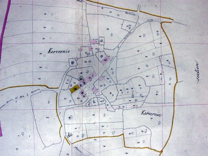 AD Morbihan. Série 3O. Voirie vicinale. 3O 2353. Chemin de grande communication n°22. Alignements. 18 juin 1909. Demande de Laniel, propriétaire à Kervernic, pour enclôre une parcelle de son terrain le long de la D22, parcelle A 768.