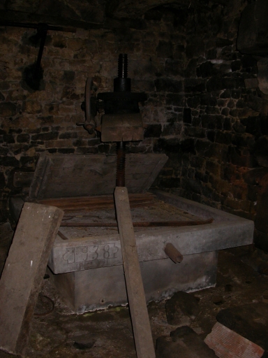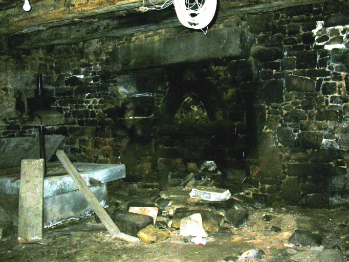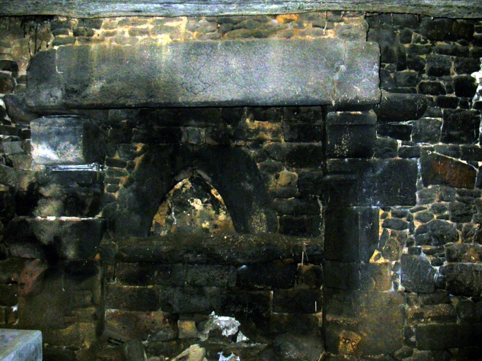 Calice gravée sur le linteau de la cheminée au rez-de-chaussée de la maison de prêtre.