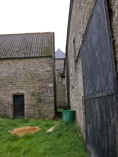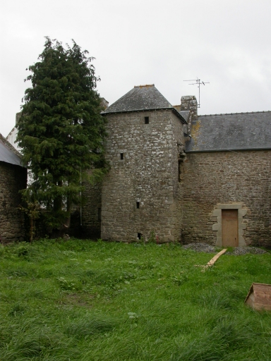 La maison de prêtre devenu dépendance construite en moellon régulier de granite est aspectée au sud. Elle se compose d'une salle avec cheminée dont la porte à linteau sur corbelets a été élargie. Il n'y a pas de communication avec l'étable accessible par une seconde porte au sud. La façade nord est aveugle. Un escalier extérieur en pierre, droit, mène à l'étage, aujourd'hui un comble à surcroît, qui n'a pas été vu. L'alignement à l'est se compose de deux unités d'habitation. A l'extrémité nord, la maison à étage carré en moellon régulier avec tour d'escalier postérieure carrée se compose d'une pièce par étage. Dans la tour d'escalier à l'étage, une porte ouverte sur l'extérieur avec arrachement signale la disparition de latrines. En prolongement de ce logis, la ferme est composée d'un logis enduit de type ternaire et sous le même toit d'une étable à haut surcroît à usage de grenier ; dans le mur gouttereau de l'étable, on note la présence de deux niches à poules avec larmier servant de perchoir. Le cellier dans l'aire à battre enclose au nord et à l'est de la dépendance isolée devenue maison est ouvert d'une porte plein cintre en pignon.