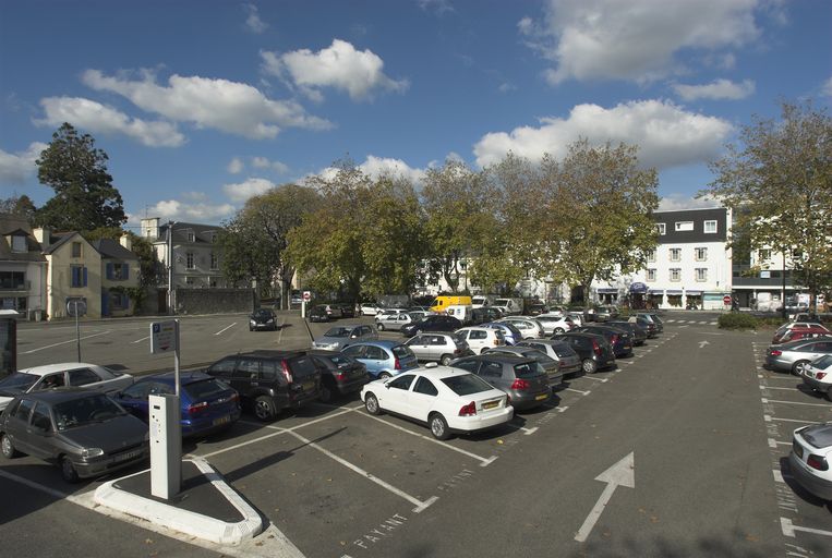 Cette place est réalisée sur l'emplacement de la chapelle Saint-Michel et de son cimetière. Elle devait exister dès le 13e siècle avec son cimetière car elle fut affectée, vers ce temps, aux enterrements de paroissiens. La chapelle avait la forme d'un long rectangle avec plusieurs autels latéraux et était triste et mal ornée selon Henry Marsille. En 1543, on y fonde la confrérie des Trépassés où elle est dite "église parochiale des nobles bourgeois". On y fait plus ou moins des réparations. Un ouragan en 1706 endommage très fortement la toiture. En 1740, menaçant ruine l'évêque l'interdit et transfère tout le service à la chapelle Notre-Dame-Des-Lices. Le parlement décide sa démolition en 1743. Les matériaux servent à la chapelle des Lices. Les ossements libérés sont déménagés au cimetière de cette chapelle. Cet emplacement est acquis en 1748 par les religieuses de la Visitation qui s'agrandissent et le transforme en verger. Aliéné sous la Révolution, le jardin est acheté par la ville en 1826 auprès du sieur Macaire pour y transférer la foire aux vaches. C'est la naissance du champ de foire, appellation qui lui restera jusqu'après la seconde Guerre mondiale. Vers 1850, les ateliers des travaux de charité agrandissent le champ de foire et le régularisent : le 11 juillet 1850, M. de la Tournaie, ingénieur des Ponts, dresse le plan du projet de rectification de la RN 165 de Nantes à Audierne qui prévoit le nivellement du Champ de foire et le déblaiement des terres. En 1849, le premier réservoir d'eau est implanté sur le champ de foire. C'est vers cette époque que l'on conçoit d'en faire le lieu de la vie administrative départementale, à l'instar de la nouvelle place de Pontivy : en vis-à-vis de la gendarmerie, terminée en 1859, devait être construite la nouvelle préfecture. Mais ce projet n'aboutit pas. En 1964, cette place devient la place de la Libération à l'occasion du 20eme anniversaire de cet événement.