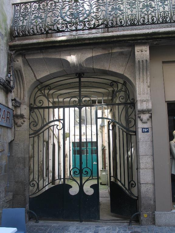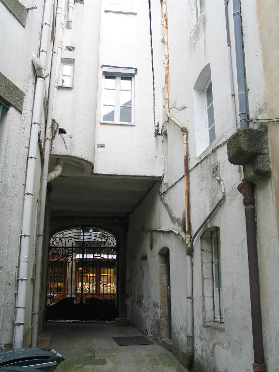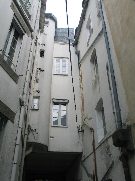 Immeuble implanté en retrait de la rue, suivant le plan d'alignement de 1841. Double en profondeur, enduit, c'est un immeuble d'angle à deux étages surmonté d'un étage en surcroît ; l'angle de la façade n'est pas coupé, mais suit une courbe marquée par la lucarne et par de larges fenêtres d'angle aux étages. L'entrée de l'immeuble se fait façade est sous le corps de passage qui donne accès à la cour intérieure desservant l'entrée de l'immeuble voisin.