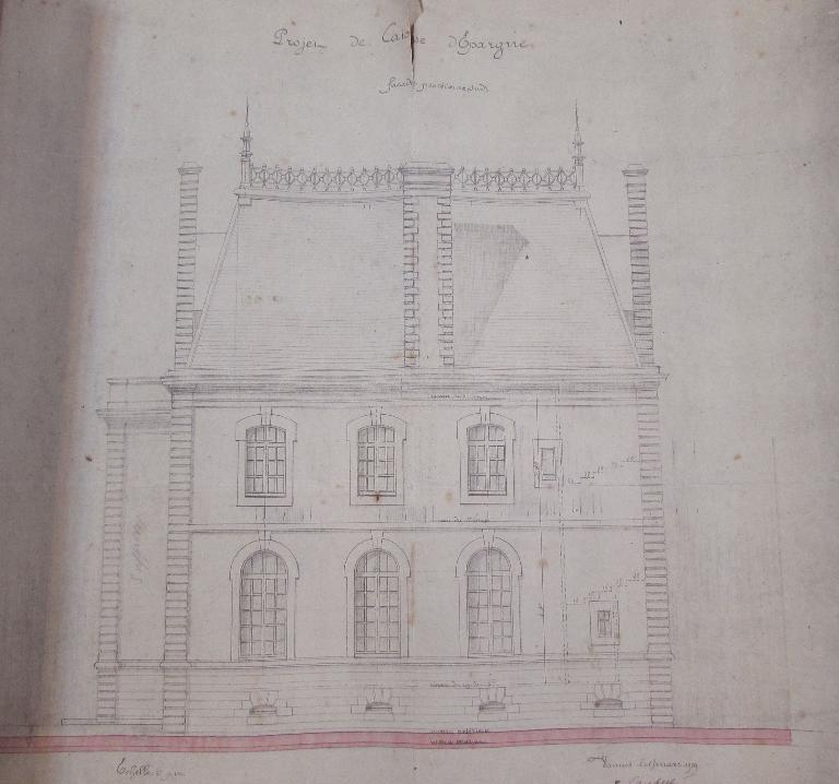 Le projet a connu des modifications comme la suppression de la conciergerie prévue au départ ou encore la lucarne centrale qui est agrandie et le cahier des charges prévoit des matériaux de qualité (granit du pays, Saint-Nolf ou d'Elven sans tâches ni fils sauf pierre de taille de Saint-Aubin qui peut être autorisée). L'architecte tient à ce que le granit soit taillé à Vannes.