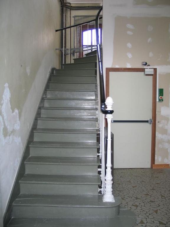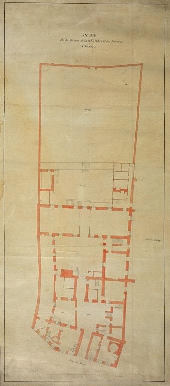 La décision de construire une école primaire communale de garçons se fait jour en février 1878 sur l'emplacement de l'ancienne auberge "Image Sainte-Anne", propriété de la ville, en raison des nouvelles lois scolaires et de la mésentente existante entre l'instituteur et le principal de l'école annexe du collège Jules Simon. Rappelons au passage que l'auberge "Image Sainte-Anne" était installée dans la maison de la Retraite des Hommes. Un plan conservé aux archives départementales nous donne la distribution des pièces pour le rez-de-chaussée.
