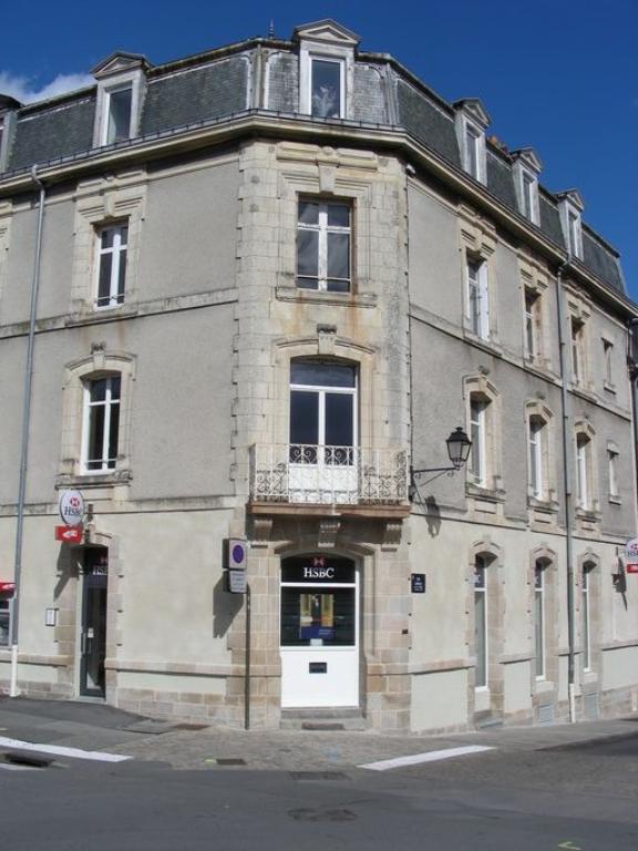Cet immeuble qui participe à l'homogénéité de la place fait preuve de grande qualité avec un traitement du pan coupé en pierre de taille de granite. Il adopte ce plan sans que l'on sache si des recommandations avaient été établies pour marquer l'entrée dans la ville ancienne après la destruction du rempart. Son vis-à-vis n'a pas fait preuve du même souci et ce déséquilibre est accentué aujourd'hui par la reconstruction de l'édifice dans les années 1970.