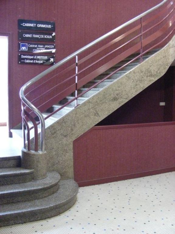 Cet immeuble qui participait à l'homogénéité de la place est surtout intéressant par l'augmentation qui y a été faite dans les années 1950 : la mise en oeuvre de la cage d'escalier, très vaste, emprunte au style "paquebot" Art déco sa mise en oeuvre, de même que l'éclairage zénithal. On retrouve la même inspiration dans l'escalier plus modeste qui dessert le corps postérieur.