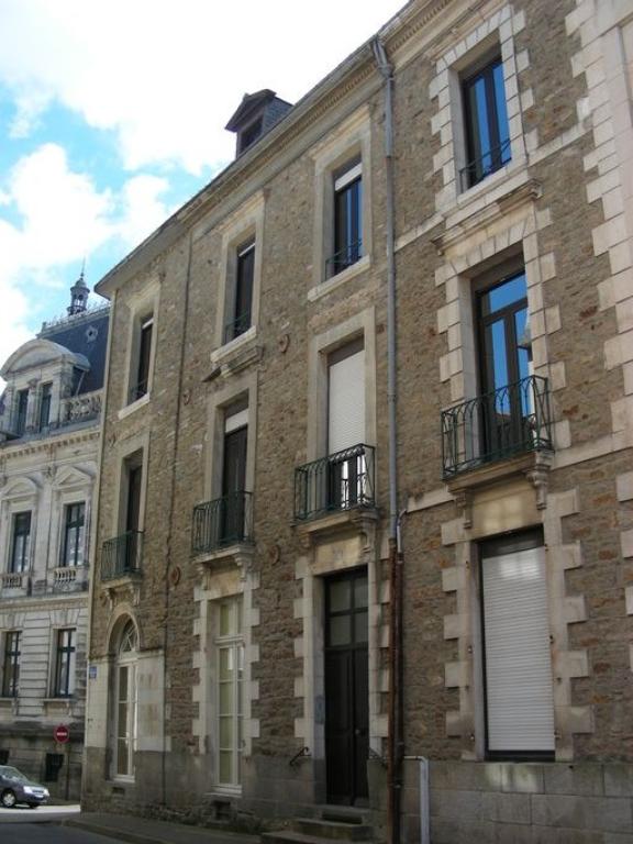 Maison construite sur une parcelle d'angle laniérée d'origine médiévale en alignement de rue. Maison à plan simple en profondeur de deux étages carrés surmontés d'un étage de comble. Elévation et matériaux sont caractéristiques de la période et en particulier de l'oeuvre de Marius Charier, dont on retrouve un exemple à l'est de la place. Elle est en moellon désenduit à élévation à travées avec ouvertures, larmiers et corniche en calcaire. Le rez-de-chaussée de la façade nord ainsi que celui de la première travée de la façade rue Lesage est en pierre de taille de calcaire sur un soubassement en pierre de taille de granite avec ouvertures cintrées.