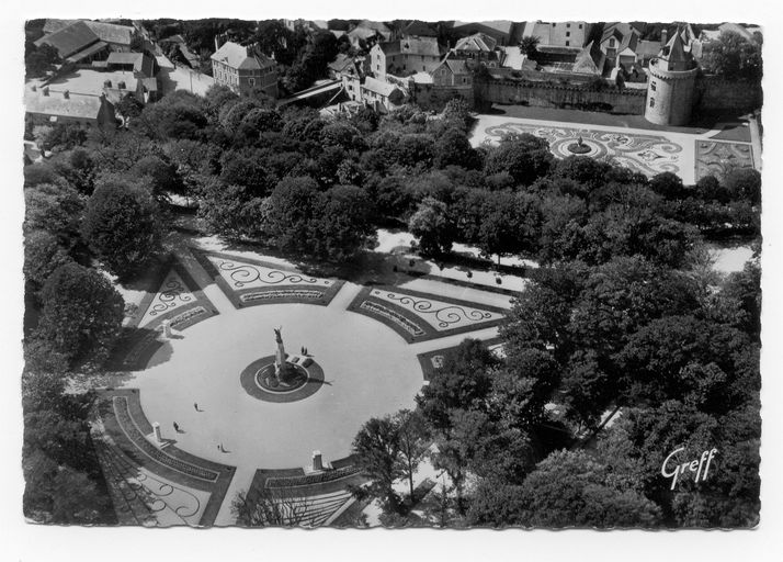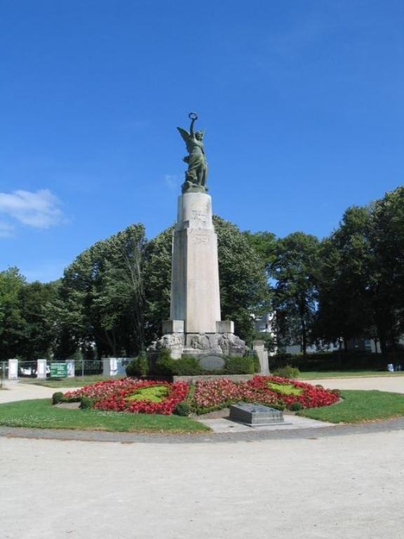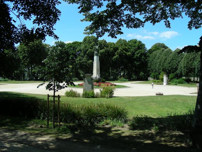 La construction d'un monument aux morts est envisagée dès 1920, mais sa réalisation sera longue à mettre en oeuvre. Le concours est organisé en 1922 ; c'est l'architecte parisien Emmanuel Ladmiral qui est retenu au détriment de Francis Renaud qui avait proposé un projet plus régionnaliste. Le lieu choisi après tergiversations est finalement en 1924 celui de la promenade de la Garenne (la place de la République et la promenade de la Rabine avait également été pressenties). Les premiers travaux débutent en 1924 sous la houlette de l'entrepreneur parisien Coste, mais sont interrompus pour malfaçons et repris par le marbier Lépinard de Vannes. Le monument aux morts est inauguré le 11 novembre 1925. Il sera complété par la suite par une série de monolithes disposés en cercle autour de la promenade et portant les noms des disparus des guerres de 39-45 et d'Indochine.