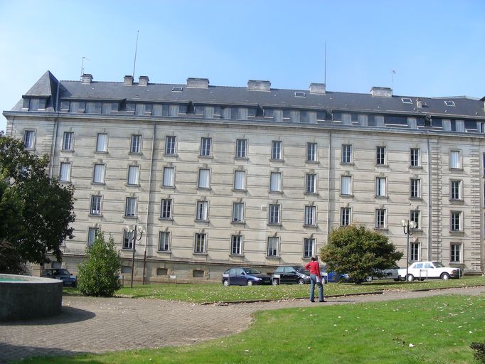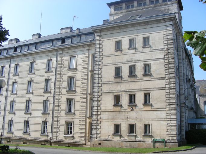 Construits à des dates différentes, les bâtiments une fois terminés forment un plan en U avec chapelle greffée sur l'aile nord. L'aile est, la plus ancienne et la plus grande, est construite sur un terrain pentu et montre une dénivellation assez importante vers le sud. Elle comprend un logis central avec à ses extrémités des corps latéraux importants de modénature différente : au nord, corps en retour comprenant une tour surmontée d'un belvédère, au sud, un corps d'entrée dont l'extrémité, en légère avancée, est couronnée d'une toiture en pavillon. A plan double en profondeur avec couloir central, le logis central montre une élévation à 14 travées de trois étages carrés en pierre de taille de calcaire sur un soubassement en pierre de taille de granite. Les baies des corps latéraux sont traités différemment : alternance de frontons triangulaires et cintrés, baies jumelées sur la tour. L'aile nord montre une élévation de deux étages carrés avec de grandes ouvertures. Les photos anciennes montrent un couloir latéral sud desservant certainement de grandes salles. La chapelle à vaisseau unique épaulé par des contreforts est construite en pierre de taille de granite sur un plan en croix latine : elle comprend de chaque côté deux chapelles jumellées dont l'une à l'est est occupée par la sacristie, une nef de cinq travées voutée d'ogives, un transept et un choeur rayonnant à cinq chapelles en absidioles. L'entrée se fait par un narthex surmonté d'une tribune réservée peut-être aux malades désireux d´entendre ou d´assister aux offices.
