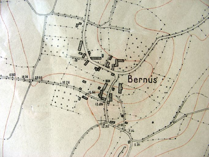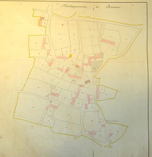La ferme qui est une des plus anciennes de Bernus, est construite dans la 1ère moitié du 17e siècle. La partie en prolongement vers le nord a été reconstruite vers 1900 comme nouveau logis, la partie ancienne de la ferme ayant été déclassée en dépendance. Elle est est aujourd'hui restaurée en habitation et la fenêtre de la partie logis a alors été agrandie. Au nord de la ferme, la grange (cave) qui ne figure pas sur le plan cadastral de 1844 est construite sans doute peu après ; sa porte charretière en pignon a été réduite en hauteur lors de la transformation de cette grange en habitation.