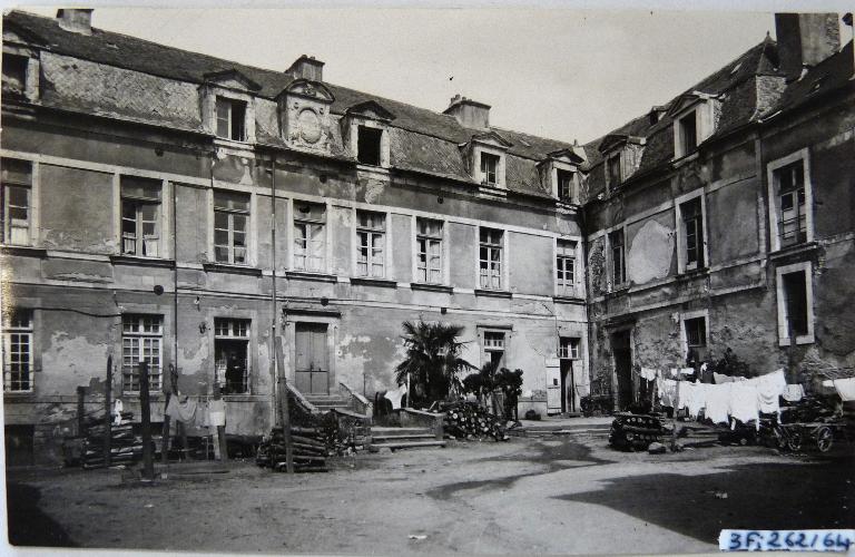 Installé sur la place de la Poissonnerie, l´hôtel de Bazvalan constitue un très intéressant exemple d´adaptation à la parcelle. Il est probable que l´édifice actuel résulte d´un regroupement de parcelles, peut-être au 17e siècle en l´absence de recherches d´archives. La dénivellation actuelle entre l´est et l´ouest de l´édifice est sans doute apparue lors de la mise en place de la rue Thiers et de la disparition du bastion : celui-ci, afféagé tardivement, permit la création d´un espace de jardin surélevé, enclavé dans le rempart. Etabli lors de la vente révolutionnaire, le plan permet une analyse du bâti au 18e siècle : le bâtiment principal se compose de deux ailes en équerre, l´escalier à quatre volées avec jour central se situant dans l´aile nord, à la jonction entre les deux corps (l´aile nord ayant été détruite vers 1970, il ne reste aucun souvenir de cet escalier sans doute en bois, aujourd´hui remplacé par un escalier en béton dans une cage demi-hors-oeuvre semi-circulaire en pavé de verre). On accédait au logis principal par un escalier en pierre perpendiculaire à la façade, vers un rez-de-chaussée légèrement surélevé qui n'a conservé aujourd'hui aucun vestige : il semble qu'il s'agissait du niveau des cuisines au 18e siècle, puisque les pièces d'apparat sont situées au premier étage. L'entrée principale semble se faire au niveau de la cage d'escalier, donc dans l'aile aujourd'hui détruite. Au premier étage de l'aile en partie conservée, trois pièces en enfilade dont deux ont conservé des lambris d'époque différentes et deux des cheminées du 18e siècle, l'une d'entre elles portant les armes en alliance des propriétaires. Le corps principal en équerre était surmonté d'un étage en surcroît coiffé d'une toiture brisée. L'aile de retour sur la cour au sud, sans doute de la fin du 18e siècle selon la photo faite par Thomas-Lacroix, n'avait qu'un étage carré et était couronné d'un toit à croupes : il pourrait s'agir de la 'gallerye' décrite en 1679, mais peut-être alors ne comprenait-elle pas d'étage. Quant au retour nord-est qui comprenait le pavillon d'entrée, contemporain de la première construction, il ne comportait qu'un rez-de-chaussée situé au niveau du premier étage du corps principal, compte -tenu du décalage de niveau avec la rue. Complété par l'aile en retour sud-ouest, l'hôtel a donc au fil du temps, évolué d'un plan en L, puis en T à un plan en H irrégulier.