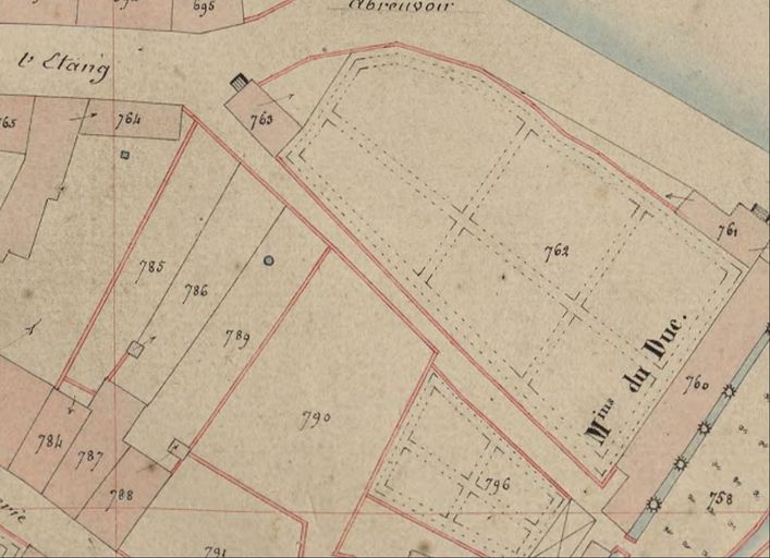 La ruelle de l'Etang est ancienne. Elle dessert le moulin au Duc, en venant de la rue de l'Etang et débouche rue de la Tannerie. Elle fait l'objet d'un plan d'alignement en 1913.