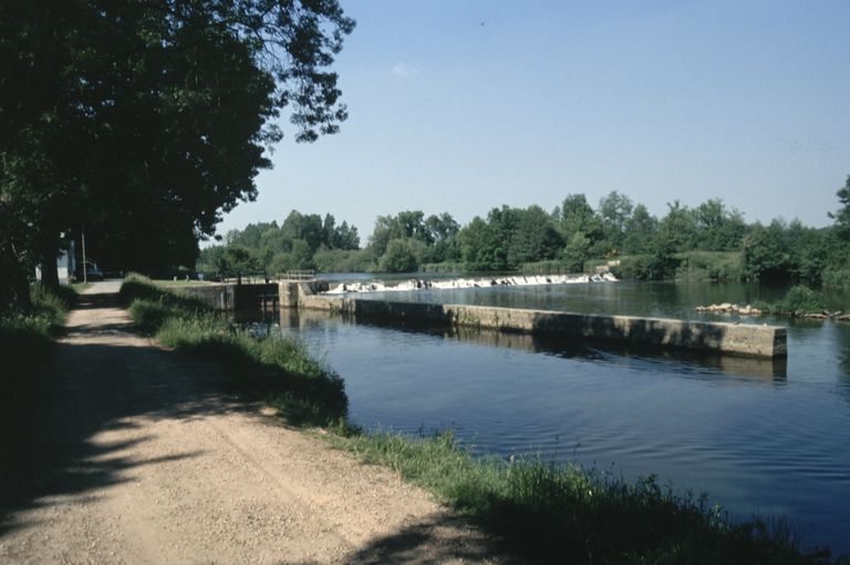 L'écluse ne figure pas sur le cadastre de 1829. Elle sera construite au lieu-dit "les Prés carrés", au nord de la Ville aux Figlins, là où se trouve alors, d'après le même cadastre un déversoir et une avancée rectangulaire sur la rivière d'Oust, en amont du débouché du ruisseau de Tromeur. À moins que le dessin du cadastre ne figure déjà les premiers travaux de construction de l'écluse.