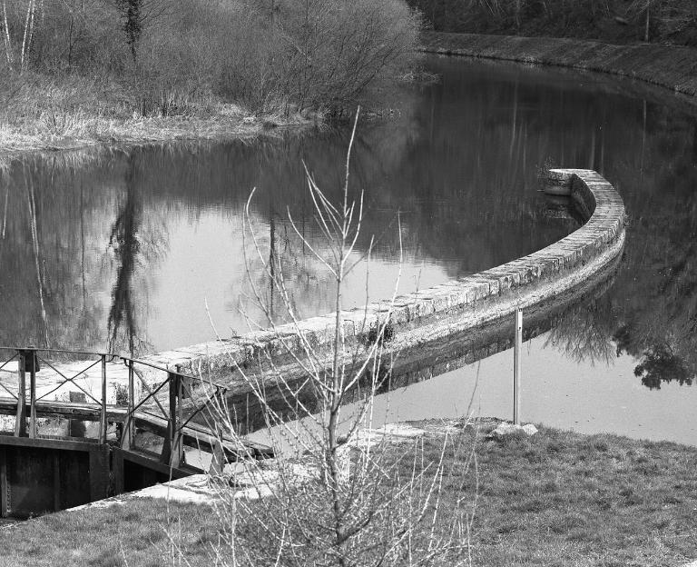 Site de qualité : courbure de la digue appareillée en amont de l'écluse et charme du paysage.