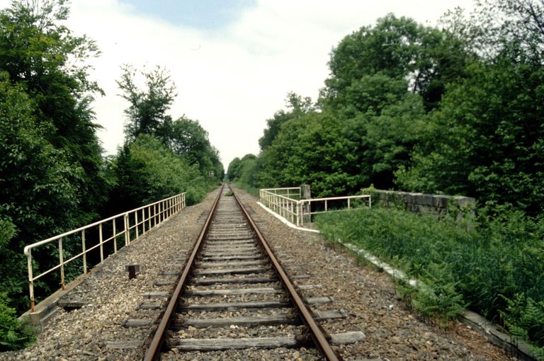 Ligne de chemin de fer de Pontivy à Saint-Brieuc franchissant le canal de Nantes à Brest. Projet de viaduc proposé le 9 février 1869 par l'ingénieur de la Compagnie de chemin de fer, accepté après contrôle des ingénieurs des Ponts et Chaussée le 24 juin 1870. Le pont a été bombardé pendant la seconde guerre et reconstruit (tradition orale).