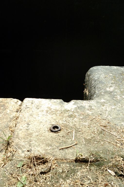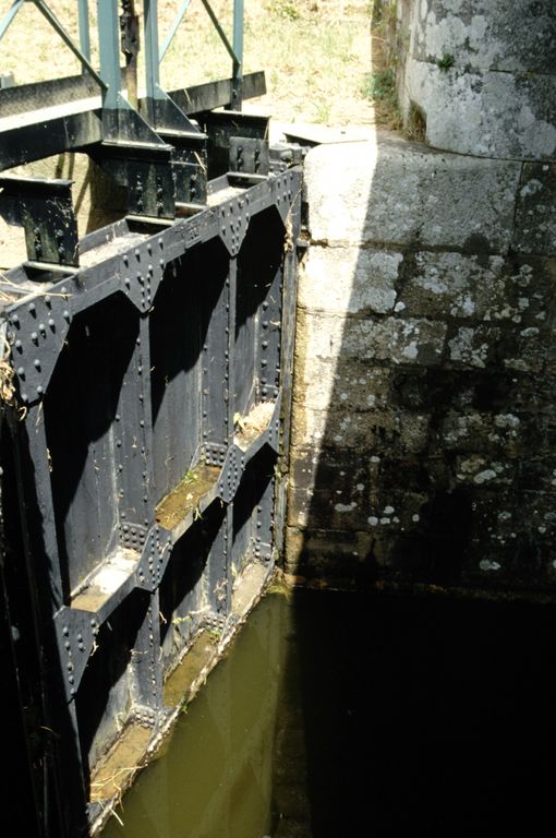 Écluse à sas ; moyen appareil de granite, parements supérieurs & chaînes d'angle : grand appareil de granite, porte aval à panneaux de bois.