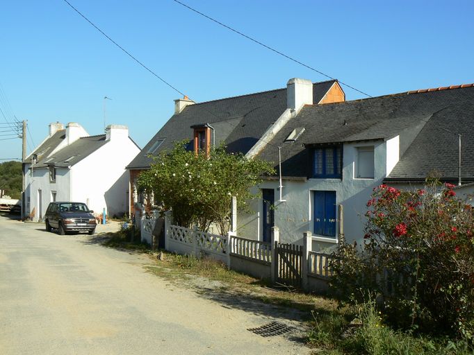 Les villages de Cadouarn, Kerdavid et Le Ranquin ont grossi en lien avec l´accroissement rapide de l´activité de pêche à la fin du 19e siècle et au début du 20e (le nombre des maisons a quasiment doublé entre 1841 et 1896). Leur architecture qui date majoritairement de cette époque est donc relativement similaire. La rue de Cadouarn qui descend directement vers la grève qui servait autrefois de port d´échouage, en offre un très bel exemple. Bordée de chaque côté par un alignement régulier de maisons construites pour les familles de pêcheurs, cette rue est typique des lotissements populaires des années 1900. Les maisons, généralement de petite taille, séparées de la rue par un minuscule jardinet, se composent d´un rez-de-chaussée et d´un étage sous combles. La façade, généralement crépie, présente une porte et souvent une unique fenêtre, et un grenier éclairé par une lucarne pendante - aussi appelée gerbière (ouverture au niveau du toit, dans le prolongement du mur de façade) - surmontée d´un fronton triangulaire en pierre. Le jardin arrière, qui permettait aux pêcheurs de cultiver quelques légumes, a souvent disparu (vente du terrain). L´aspect extérieur de ces maisons commence néanmoins à être notablement modifié afin de les adapter au goût et au mode de vie de leurs nouveaux habitants : élargissement des lucarnes, percement de nouvelles ouvertures, pose de crépi coloré, adjonction de clôture fantaisiste, construction de petites remises.