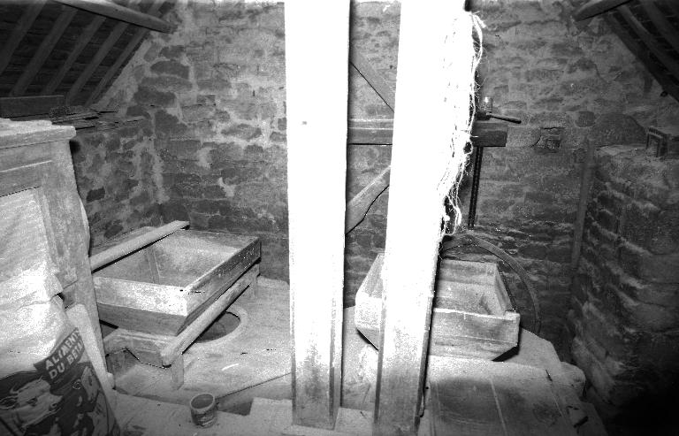 - les deux moulins de Tronscorff ont aussi conservé leur mécanisme, en particulier le petit moulin à seigle où le mécanisme occupe la presque totalité de l’espace. Le grand moulin peu remanié date du 17e ou 18e siècle et comportait une partie logement.
