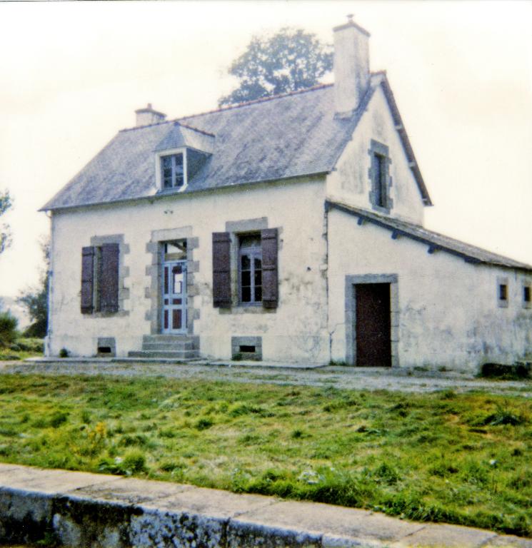 Logis : plan de type ternaire en rez-de-chaussée ; comble à lucarne et fenêtre dans chaque pignon ; fenêtres de grandes dimensions ; murs : moellons de schiste enduits ; perron et encadrements des baies harpés : pierre de taille de granite ; une souche de cheminée décalée sur chaque versant du toit. Dépendance sous le logis (accès par le mur pignon gauche) : étable ou espace de stockage. Dépendance à droite du logis : toit en appentis ; murs : moellons de granite enduits ; encadrements des baies : pierre de taille de granite ; deux fenêtres rectangulaires dans le mur gouttereau. État actuel : enduit refaits, comble aménagé, percement d'une fenêtre en façade postérieure.