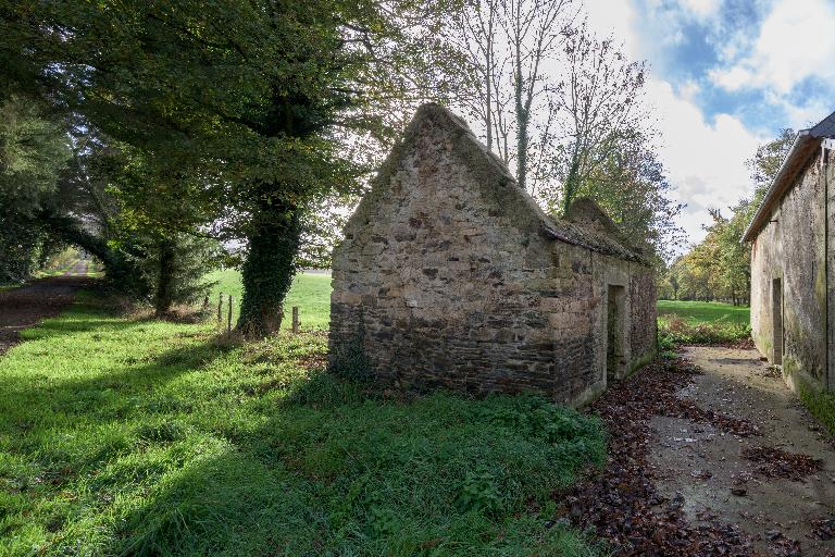 Logis : plan en longueur ; rez-de-chaussée ; comble à une lucarne et une fenêtre dans le pignon droit ; fenêtres de grandes dimensions ; murs : moellons en granite et schiste enduits ; encadrements des baies : pierre de taille de granite ; deux souches de cheminée. Deux dépendances de part et d'autre du logis (ajout ancien) ; toit en appentis ; à droite : deux fenêtres dans le mur gouttereau. Dépendance à l'arrière, parallèle au logis : toit à longs pans. Puits. État actuel : maison abandonnée, menacée.