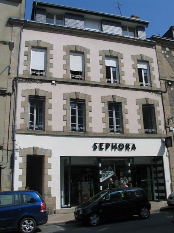 Immeuble construit pour Victor Zacharie Graux en 1872 sur les plans dressés par l'entrepreneur François Fougère de Vannes dans les anciens fossés afféagés des remparts reconvertis en jardins qui dépendaient de l'évêché. Il figure sur le plan de la ville dressé par Napoléon Bassac en 1869. L'annuaire du département de 1899 signale à cette adresse la boutique de monsieur Maurice Séveno, marchand tailleur. Les aménagements successifs du local commercial ont fait disparaître les dispositions d'origine du rez-de-chaussée, exception faite de la porte d'entrée des parties habitations. Aménagement des combles en appartement à la fin du 20e siècle. Cet aménagement a remplacé les lucarnes en bois visibles sur les anciennes cartes postales.