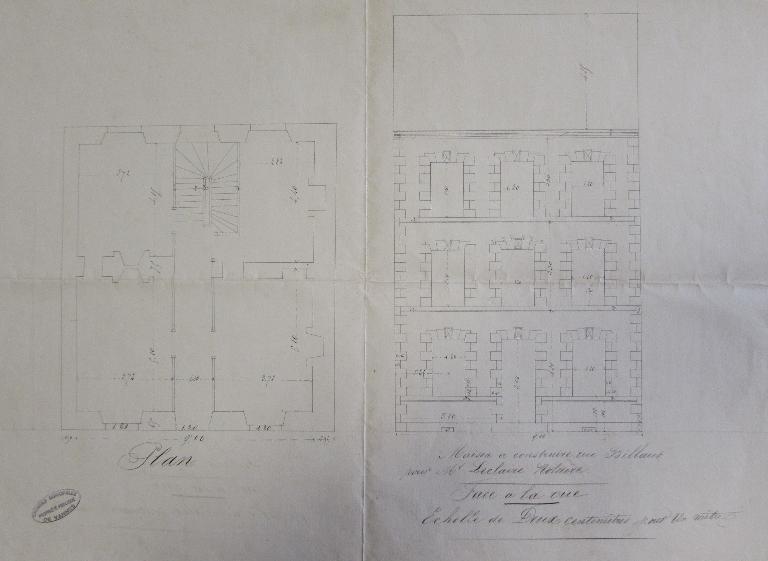 Immeuble construit en 1869 pour Joseph Le Claire par l'entrepreneur François Fougère d'après le plan dressé ci-joint et les matrices cadastrales. Contrairement aux autres immeubles de la rue, l'espace libre consiste en un jardin postérieur. Les aménagements successifs des locaux commerciaux ont fait disparaître les dispositions d'origine du rez-de-chaussée.