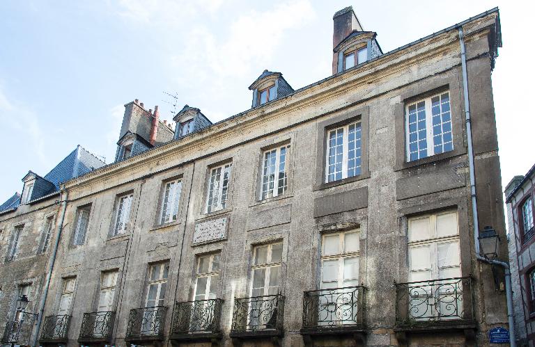 Hôtel peut-être construit dans la première moitié du 17e siècle, acquis par Pierre Dondel, seigneur de Keranguen, conseiller du roi et premier magistrat au siège présidial de Vannes auprès de son oncle François de La Pierre, sieur des Salles, le 29 mai 1680. Si Pierre Dondel procéda à quelques remaniements dont peut-être la construction d'une aile secondaire, il est plus certain que c'est son fils, Pierre-François Dondel, qui, après son mariage avec la fille d'Olivier Delourme en 1726, fit édifier par ce dernier le corps sur rue en calcaire, rejetant l’escalier dans le corps sur l'arrière avec la création d'une cage d'escalier expliquant le décrochement du mur pignon sud. Le sous-sol reprend le plan en L du premier logis en montrant vers l'est les vestiges d'anciens soupiraux bouchés lors de la création de la cage d'escalier. Le "Plan des ruines de l'ancien château de l'Hermine", dont la copie dressée par Pressat en 1797 est conservée, montre que la tour de la porte Calmont (tour du portier) fait également partie de la propriété Dondel. La famille est encore propriétaire de l'hôtel en 1840 d'après les archives conservées et les travaux engagés sur le mur pignon sud-est qui menace ruine. Bien que le plan d'alignement, dressé en 1840, montre l'aile secondaire de l'hôtel sans extension sur la venelle, il est probable que cette extension ait existé avant cette date, d'ailleurs fermée en rez-de-chaussée par un large portail.