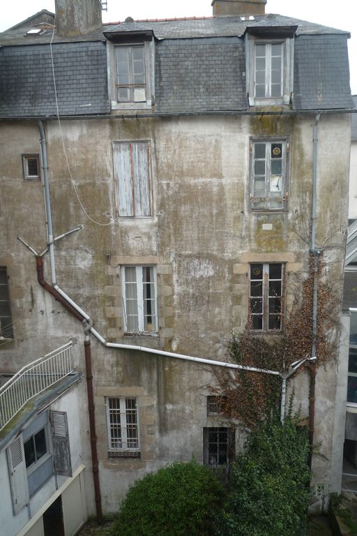 Immeuble mitoyen de l'hôtel de Marboeuf figurant sur les anciens plans cadastraux de 1807 et 1844, ainsi que sur le plan des ruines de l'ancien château de l'Hermine de 1797, où il appartient à M. de Keralbeaux. L'immeuble est en 1840 (AM Vannes 1O216) la propriété de Jean-Marie Jubier, dit vitrier-peintre à Vannes qui détient un droit de passage dans la cour de monsieur de Lamarzelle, alors propriétaire de l'hôtel de Marboeuf.