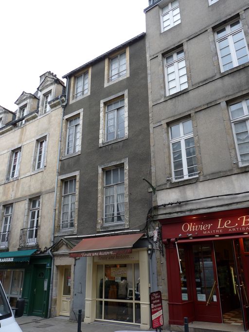 Maison bâtie en alignement de rue sur une parcelle traversante à plan triple en profondeur. Maison à deux puis trois étages carrés sur sous-sol avec façade à deux travées enduite avec porte décentrée surmontée d'un fronton triangulaire en granite. Les fenêtres ont des encadrements réguliers en calcaire, exception faite de celles du 3e étage qui ont des encadrements en ciment. La façade postérieure en granite et parpaing a été recouverte d'un enduit projeté ciment. Maison ouvrant sur un couloir latéral desservant une cage d'escalier dont la première volée s'encastre et forme saillie dans la parcelle voisine. L'escalier à balustres à retours avec jour en bois distribue à chaque étage et à l'origine 2 pièces avec cheminées, celle donnant sur la rue ayant été divisée par la suite. Un escalier secondaire part de chaque palier pour desservir les pièces de l'extension (18e siècle) situées en façade ouest. Les divisions transversales sont d'est en ouest, un mur de refends (17e siècle), en partie coupé au niveau de la cave et au rez-de-chaussée, puis un mur en pan de bois (ancien mur extérieur séparant la partie 17e siècle de la partie 18e siècle). Les conduits de cheminée sont en tuileau de brique visible dans le comble.