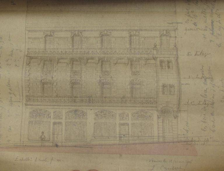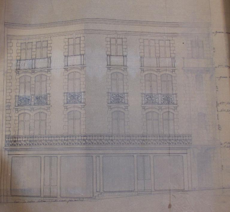 A. D. Morbihan 149 J 300. Construction d'un immeuble à usage de commerce et d'habitation : 1 rouleau de 110 plans 1906-1907.