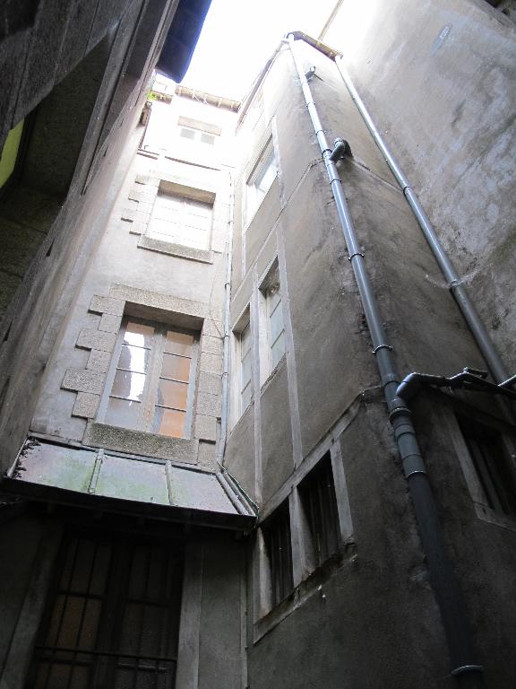 Grand immeuble formé de deux corps qui s'organisent autour d'une cour centrale postérieure. L'immeuble sur rue à 5 travées est bâti sur un sous-sol rocheux visible dans les caves. Il comprend 3 étages carrés et un étage de comble desservis par un escalier latéral postérieur en bois à retour avec jour qui dessert également un entresol aménagé en façade postérieure. Un petit corps en saillie construit en pan de bois et surplombant une petite cour postérieure comprend les pièces de service. Une seconde cage d'escalier, latérale médiane, en bois en retour avec jour donne accès par une venelle latérale sud au corps postérieur et peut également distribuer le corps sur rue. L'entrée de l'immeuble sur rue se fait par une porte d'entrée latérale surmontée d'un oriel de deux étages en pierre de taille avec balcon et croisillons en gardes-corps. Le support de l'oriel est décoré de motifs d'acanthe. Deux balcons filant courent sur la façade et desservent les portes-fenêtres.