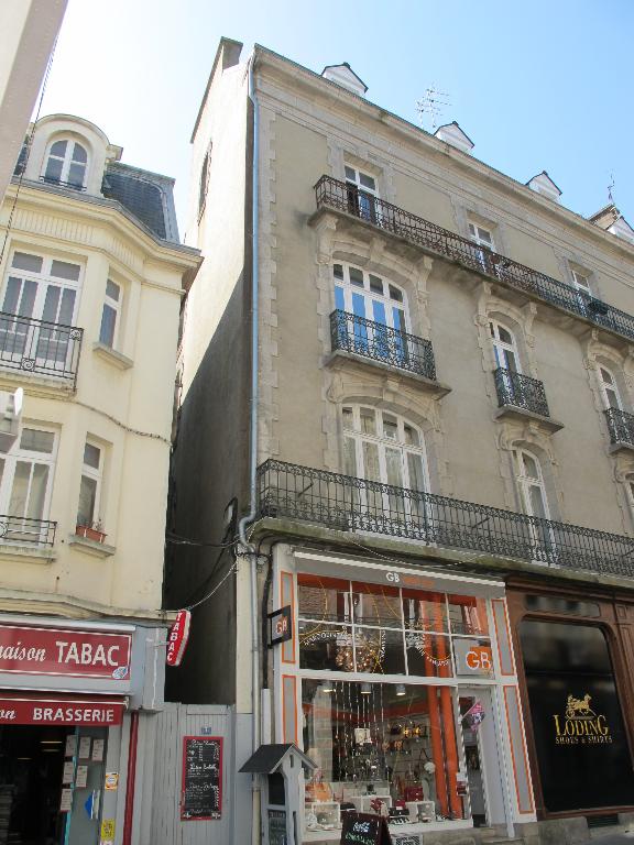 Immeuble reconstruit au début du 20e siècle sur l'emplacement de trois anciennes maisons en pan de bois comme l'indique le cadastre de 1844 et la carte postale ancienne de la rue de la Monnaie avant son élargissement et qui d'après les archives appartiennent en 1677 à Marie Thomas, veuve de Robert Cousturet, sieur de Lourmel, avocat, Guillaume Bigaré, conseiller du roi au présidial de Vannes et Gilles Naël, procureur au présidial de Vannes. L'immeuble est construit pour la famille de Joseph Le Bras, spécialisée dans l'ameublement et la tapisserie d'après une information orale et l'annuaire du Morbihan de 1913 ; ce qui explique l'agencement de l'immeuble autour d'une cour centrale à l'arrière du corps sur rue qui rejoint le corps postérieur ayant servi d'atelier avant sa rénovation en appartements. L'immeuble sur rue est construit sur les plans de l'architecte Joseph Caubert de Cléry dressés entre 1906 et 1907. L'architecte est aussi missionné pour surélever l'atelier qui est ancien.