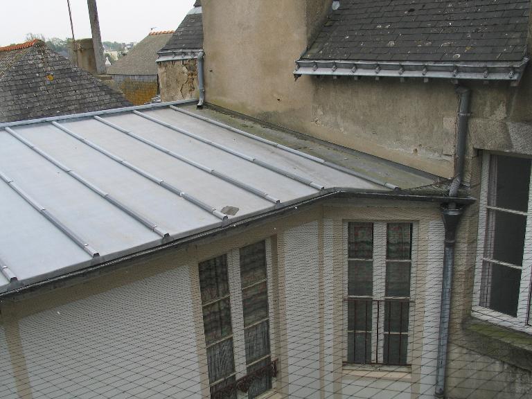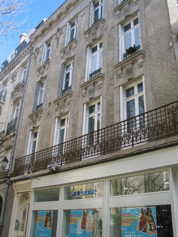 Grand immeuble de rapport en moellon enduit constitué d'un corps principal sur rue avec une aile vers l'ouest en retour d'équerre. L'immeuble comprend un corps secondaire édifié en pan de bois donnant sur une cour postérieure. Le corps principal sur rue montre une élévation ordonnancée avec un pan coupé vers l'ouest de 3 étages carrés et d'un étage de comble. Existence d'un sous-sol.