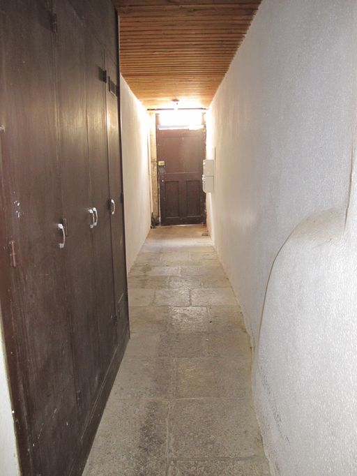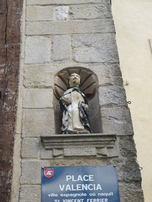 Maison réédifiée dans le 3ème quart 16e siècle, d'après le chronogramme "1574" visible sur la sablière haute, sur l'emplacement d'un ensemble de 2 maisons signalées dans le rentier du domaine ducal de 1455-1458. Elle porte le nom de logis saint Vincent pour avoir été le lieu où est mort saint Vincent Ferrier en 1419. Il existe une déclaration en 1677 dans les archives de la réformation en 1677 pour Catherine Nicolas.