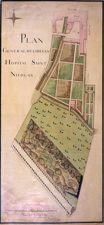Aujourd´hui presque invisible aux yeux du commun, l'hôpital Saint-Nicolas offre le grand intérêt d´avoir conservé des vestiges de sa structure médiévale, ainsi que le grand corps construit au 17e siècle pour les augustines de Dieppe qui le prennent en charge dès 1636. Après la disparition de l´hôpital Saint-Yves et les transformations radicales de l´Hôpital Général (St-Louis, Chubert), il est encore aujourd´hui le mieux conservé des hôpitaux vannetais de l´Ancien Régime.