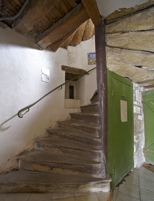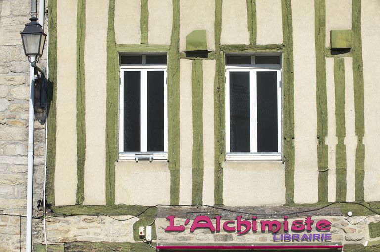 Plusieurs traits sont à souligner dans le pan de bois de cette maison, (comme d'ailleurs au n°7) : l'absence d'encorbellement, la simplicité du pan de bois, constitué de simples poteaux droits, mais aussi le plafond de la salle au rez-de-chaussée constitué de poutres rapprochées dont les abouts s'insèrent en façade entre les sablières de plafond et de chambrée.