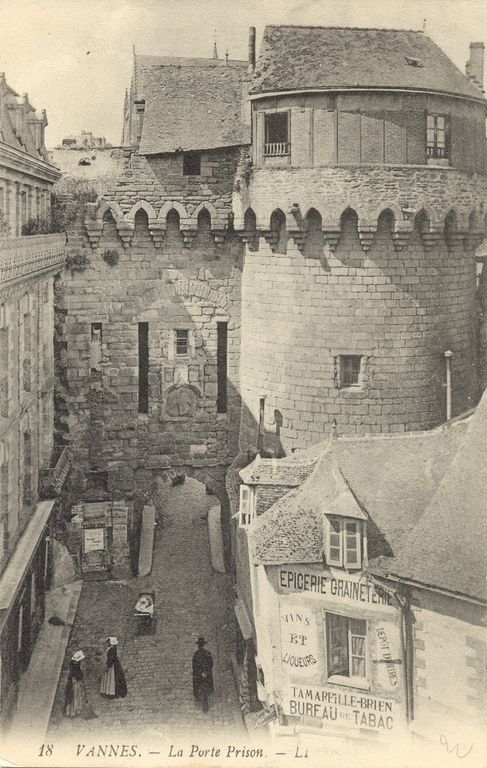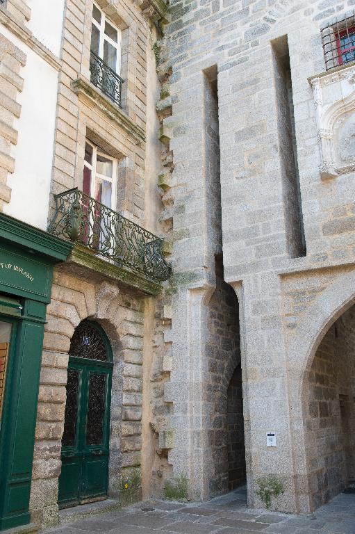 Immeuble édifié dans le quatrième quart du 19e siècle sur l'emplacement d'un édifice lié à la tour sud de la Porte Prison démolie vers 1886 et dont l'emplacement est acensé en 1678 par la communauté à Jan Le Crequer.