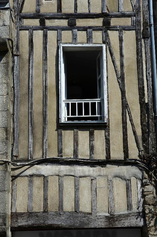 Maison formée de plusieurs corps de bâtiments édifiés en pan de bois. La maison est doublée en profondeur vers le nord par un corps en moellon enduit. Le logis principal en pavillon avec 2 ailes latérales en alignement de rue simples en profondeur autour d'une courette antérieure lui confère un plan en U ouvert vers le sud. L'édifice est construit sur un sous-sol, surmonté de 2 étages carrés et d'un étage de comble avec partie (moderne) en rez-de-chaussée. L'escalier de distribution en vis à pan de bois est contenu dans l'aile est avec accès depuis le logis principal et la petite cour antérieure. Les cheminées sont en place dans le mur ouest du logis central.
