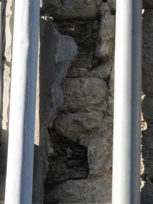 Les abouts de solive relevés dans le mur gouttereau indiquent vraisemblablement une mise en oeuvre en pan de bois qui reste à vérifier sous l'enduit existant. La maison a été agrandie par la suite en se dotant d'une aile postérieure formant un retour vers l'ouest.