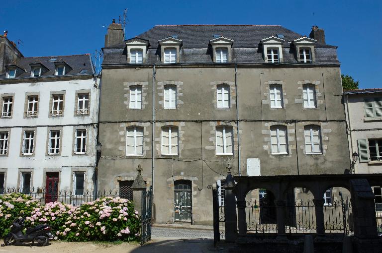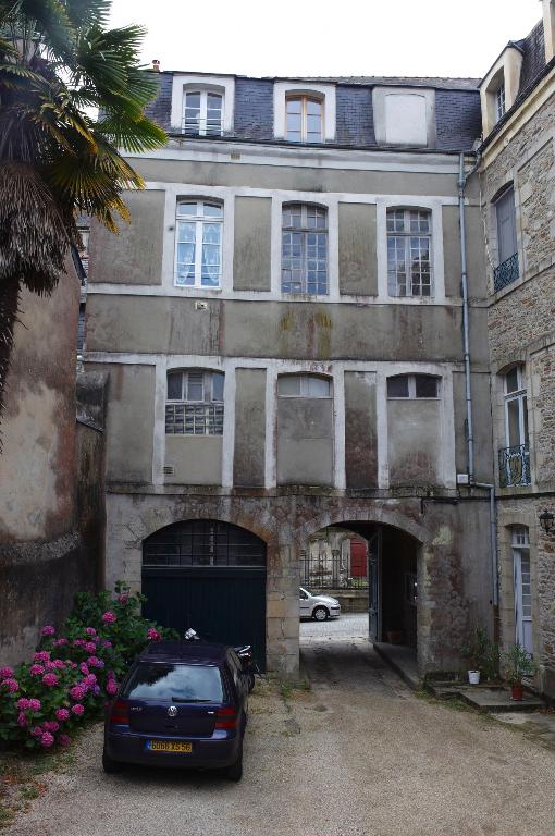 A. D. Morbihan. 6E 862 : 15 juillet 1676 : Procès-verbal de la maison prébendalle appartenant aux chanoines, située rue des Chanoines, effectué par Laurent Le Ray architecte, Mathurin Tanguy charpentier, Jacques Le Cadre menuisier, Guy Malherbe vitrier, Marc Barlet serrurier, Julien Tetiot couvreur, Jérôme Le Diagon terrasseur.