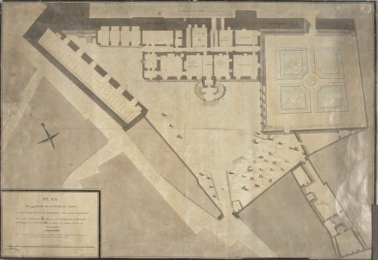 A. D. Morbihan 1Fi 275/5. Plan de la maison épiscopale ; rez-de-chaussée, fin 18e siècle.