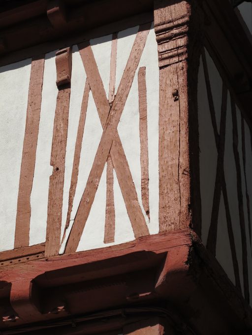 Typologiesen alignement de rue ; plan double en profondeur ; encorbellement ; mur latéral ; croix de Saint-André ; brins de fougère ; pignon sur rue