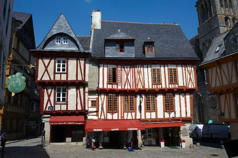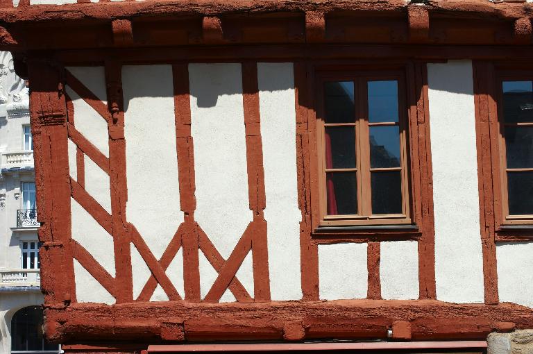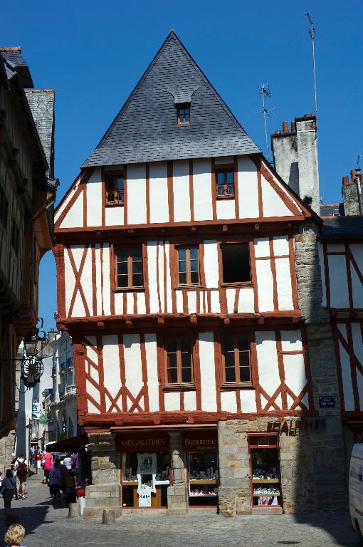 Maison très ancienne signalée dans le rentier du domaine ducal de 1455-1458 comme appartenant à Guillaume Le Roux, trésorier général de Bretagne. La maison est plus tard mentionnée dans les archives de la réformation du domaine en 1677 comme appartenant à Nicole Cillart dame de Couettec et où demeure un marchand de draps de soie, sieur Pelissier. Les caractéristiques du pan de bois utilisé sont pour les historiens de l'architecture de la première moitié du 16e siècle, notamment par son soubassement qui est de style Renaissance. Les charpentes des façades affichent des raidissements utilisés à cette époque comme des croix de Saint-André aux angles des étages, des brins de fougère. Les entretoises d'encorbellement du premier étage montrent des remaniements postérieurs à cette date. En façade sud, la maison a été dotée d'un petit corps supplémentaire en pan de bois sur l'emplacement d'un passage ou d'une petite cour latérale. Les soubassements d'origine ont été en partie modifiés. Subsistent en façade sud une colonne en pierre de taille et la pile d'angle d'origine traitée en pilastre. Le pignon sud de la maison montre les traces des ouvertures primitives placées en succession avec les menues croisées en allège.