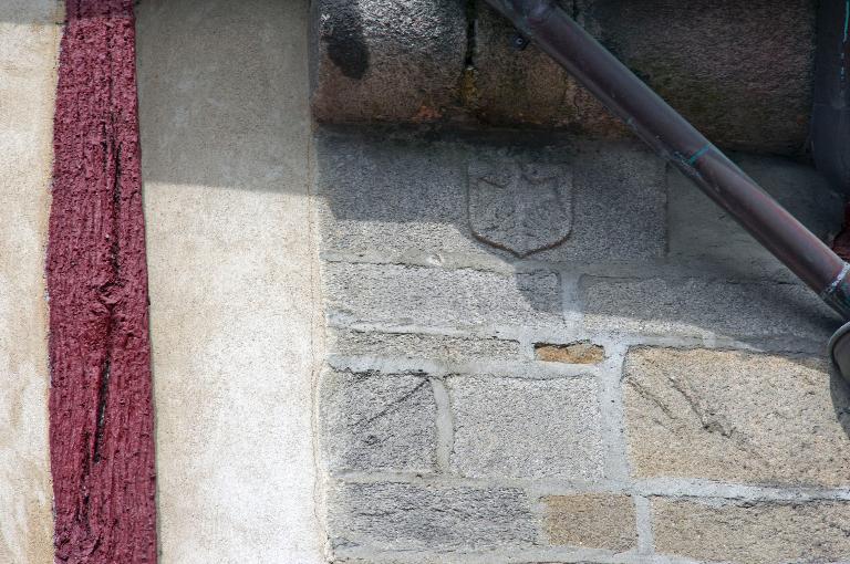 Inscription gravée sur l'entretoise de l'encorbellement du premier étage de la façade sud : "le chat qui dort est esveillé". Blason sculpté sur le mur latéral au niveau du deuxième étage, armoiries non identifiées.