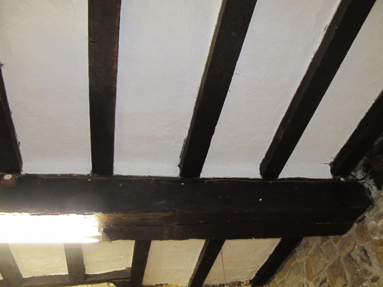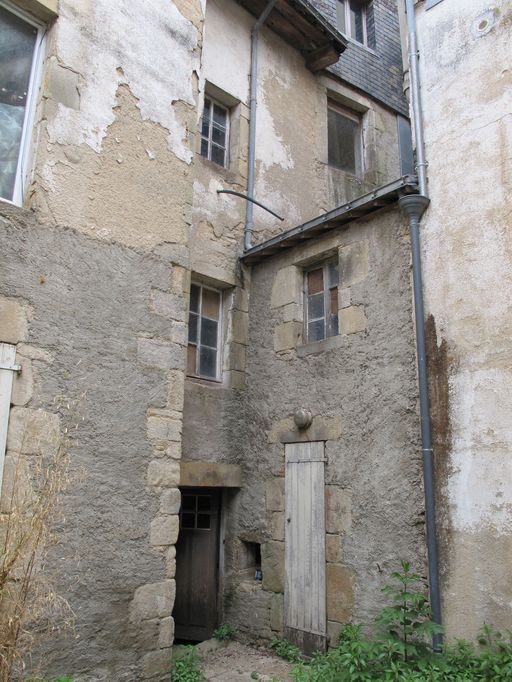 L'étage sur rue n'a pas été vu. L'escalier à fines balustres, caractéristique du début du 17e siècle dessert, outre les pièces sur rue, une pièce sur cour avec cheminée en boiserie à piédroits galbés caractéristique du milieu du 17e siècle. Au second étage, l'escalier, à rampe à balustres plats, conduit au comble dont le sol est garni de carreux de terre cuite. Ce grenier garde les traces des cloisons en pan de bois qui le divisaient.